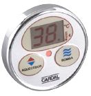 Permite acionar o pré-aquecimento, a bomba de hidromassagem, ajustar a temperatura da água conforme a necessidade e ainda monitorar a temperatura durante todo o banho.